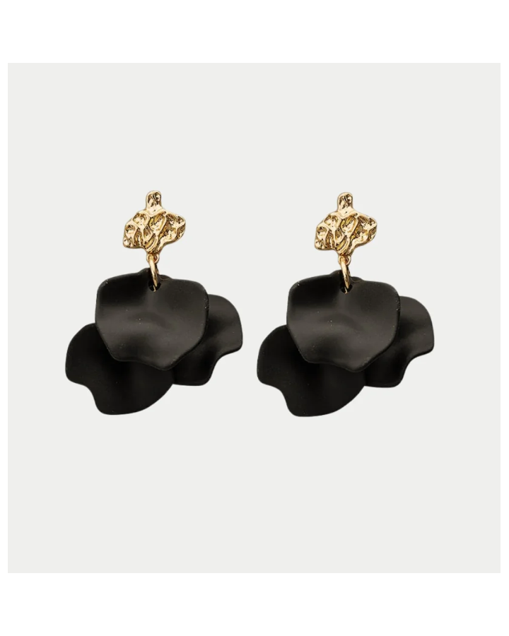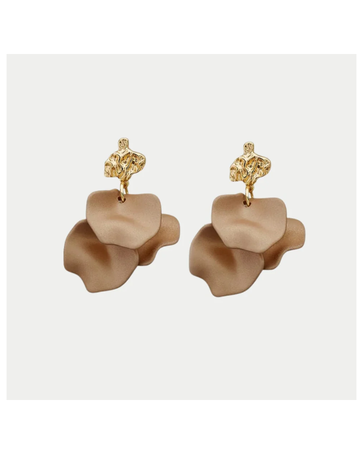Dessa stiliga hamrade örhängen är den perfekta accessoaren för att förbättra vilken outfit som helst. Lätta blad hänger från en guldtopp med hamrad look.