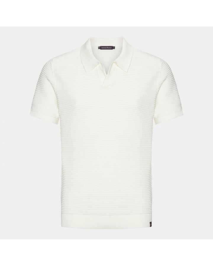 LESS WORRIES S/S KNITTED RESORT POLO - OFF WHITE